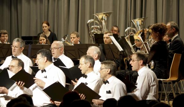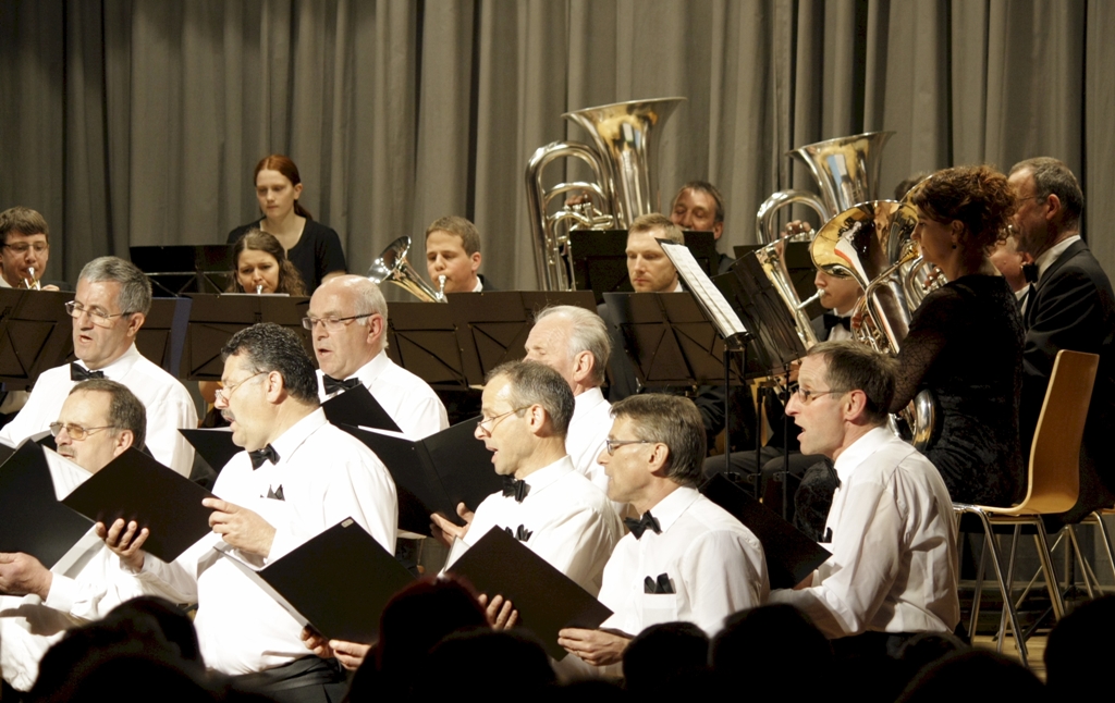 Es war ein imposantes Bild, als 17 Sänger und 21 Bläserinnen und Bläser um 19.30 Uhr das Konzert eröffneten. Gemeinsam spielten sie als Auftakt den Marsch «Klänge der Freude» von Edward Elgar (1857–1934). Die kräftigen Männerstimmen, untermalt vom Brassband-Sound, ergaben eine herrliche Klangfülle. Abwechselnd traten dann der Männerchor auf, unter der Leitung von Kornelia Scherer-Chrobog, und der Musikverein, Dirigent Roland Wernli.