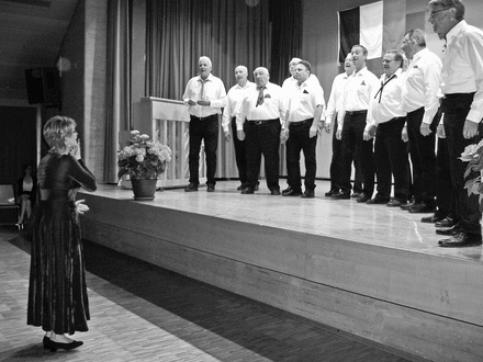 Nach der Pause kam er endlich, der Titel von Edith Piaf: «Schau mich bitte nicht so an» aus «La vie en rose». Dann sang der Chor «Chanson d´amour» nach der berühmten Kreation von den Manhattan Transfer. Schon mal etwas zum mitschunkeln. «Aux Champs-Elysées» nach Joe Dassin begeisterte. In der Pause war die Second plat, der berühmte Coq au vin an Burgundersauce, fällig. Nun kam ein berühmtes Gesangssolo von Kornelia Scherer-Chrobog mit Klavierbegleitung von der quirligen Marielle Haag-Studer: «Ich hab geträumt vor langer Zeit» aus dem Musical Les Misérables. Ein langanhaltender Applaus für die beiden Damen folgte. Danach waren wieder die Männer dran, mit dem «Lied des Volkes», ebenfalls aus Les Misérables. «Barkarole» nach Jacques Offenbach erforderte die Inbrunst der Männer: «Schöne Nacht, du Liebesnacht». Das «Trinklied» aus La Traviata begeisterte vor allem die männlichen Zuhörer. Dessert gefällig? Er kam wiederum von Ruth Brunner und war mächtig. Zum Schluss sang der Männerchor natürlich «Merci Chérie» nach Udo Jürgens. Zugaben? Natürlich ja.